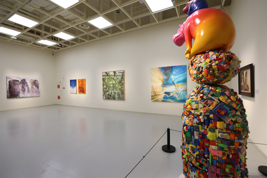 展览共分为五大版块:“拓荒先驱”“重大贡献”“实验探索”“桃李天下”与“未来种子”,系统呈现了上戏美术教育从奠基、发展到创新、拓展的全过程。参展艺术家共计131位,展出作品150余件,涵盖架上绘画、装置、影像、AI艺术等多种媒介,展现上戏在视觉艺术领域的探索与实践。